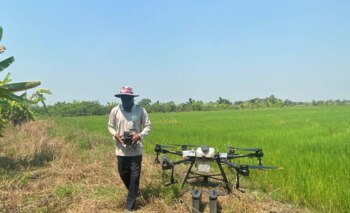 As a child, Manit Boonkhiew watched his grandparents plough their rice farm near Bangkok with water buffaloes, and harvest by hand. His parents switched to tractors and threshers, while he now uses a zippy drone to spray pesticide in his field.